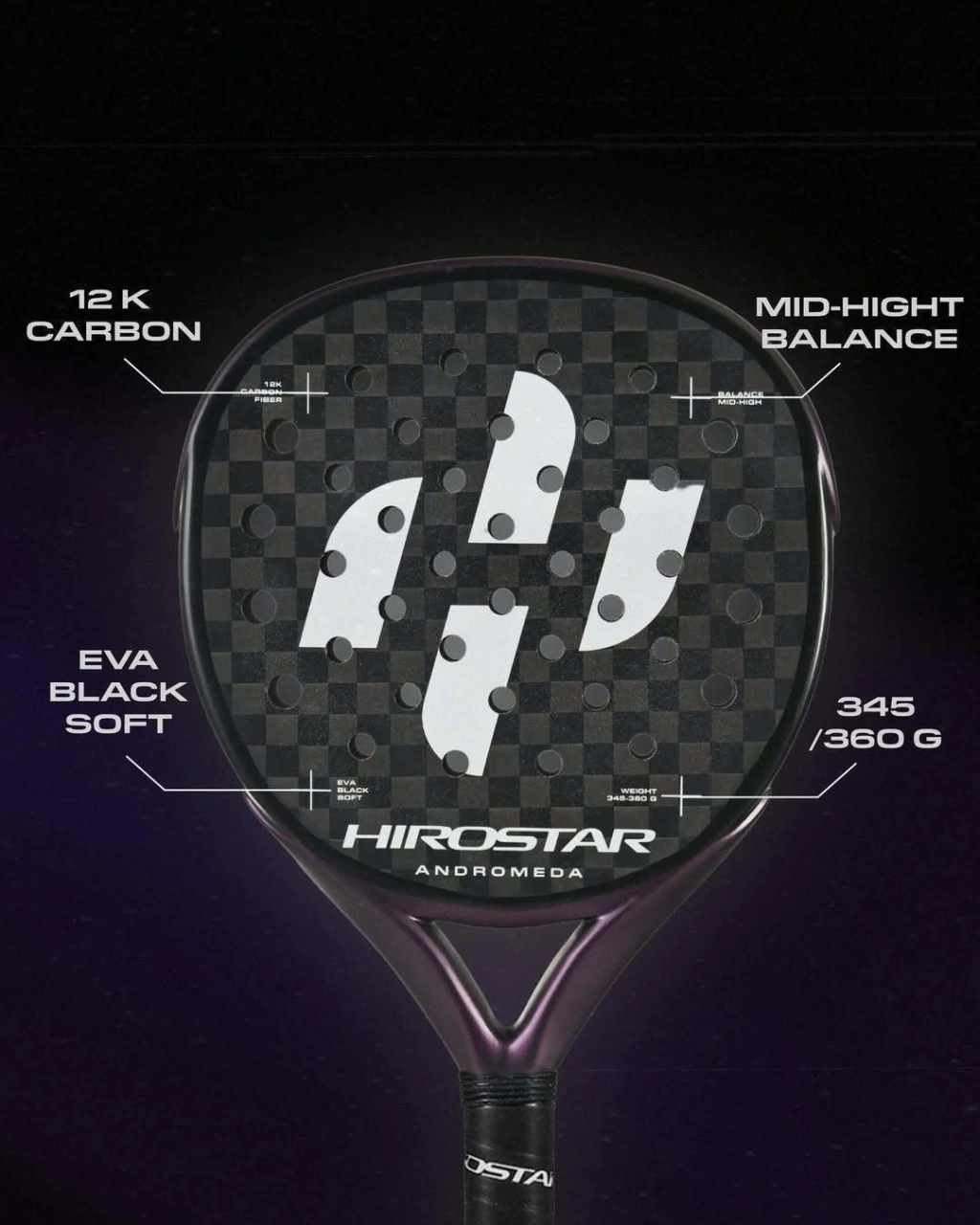 La Hirostar Andromeda es una pala ligera de la colección Precision, ideal para jugadoras y jugadores que buscan comodidad sin renunciar al rendimiento. Gracias a su peso reducido y a su construcción en carbono, es perfecta para personas con problemas de codo o que prefieren una pala más manejable. Su forma de lágrima y balance medio aportan versatilidad, combinando control y potencia en un estilo de juego dinámico.